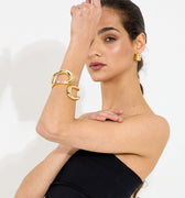 Ett skulpturalt armband som förenar modern design med tidlös elegans. Formen är designad för att följa kroppens naturliga konturer och ge en bekväm passform med ett sofistikerat intryck.Tillverkad med galvanisk plätering och helt fri från nickel – skonsam mot känslig hud.